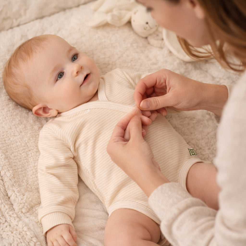Nuestro body suit es es una bienvenida llena de suavidad y ternura. Diseñado especialmente para los primeros meses y esencial para el confort del bebé y la tranquilidad de mamá y papá, facilitando el cambio de pañal.