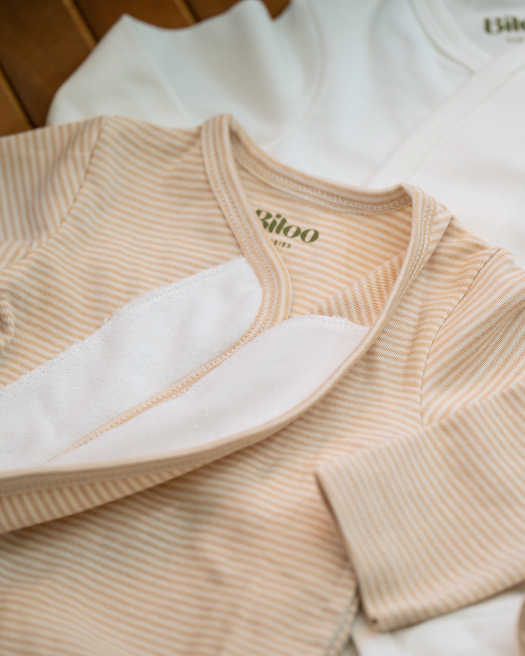 Nuestras pijamas tienen una cremallera oculta en la entrepierna que permite cambiar el pañal sin desvestir al bebé, evitando que se despierte o se enfríe durante la noche. ¡Una solución pensada para padres cansados y bebés dormilones!